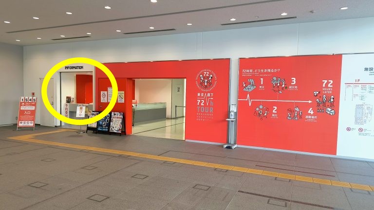 施設に入って左奥のインフォメーションカウンターに、団体名と当日の人数をお伝え下さい。
