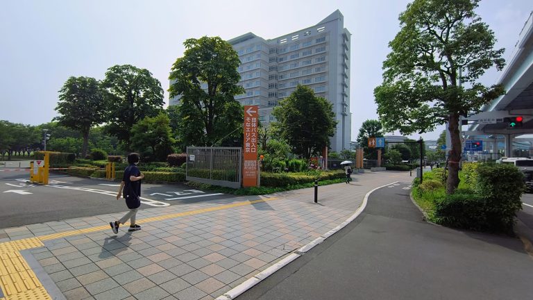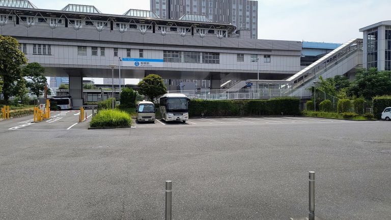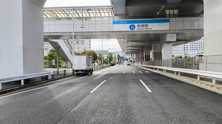 都道484号線を北側(豊洲方面)から南側へ走行すると、ゆりかもめ有明駅が見えてきます。