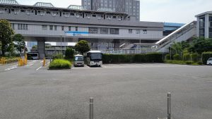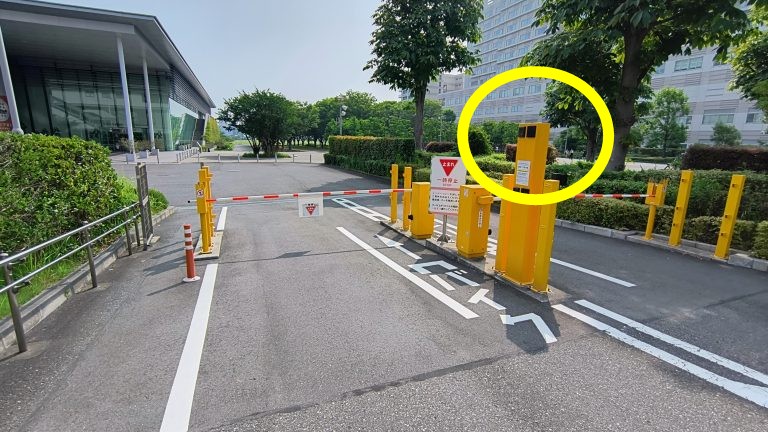 有明駅を越えてすぐ、左側にバス入口がありますので左折してください。